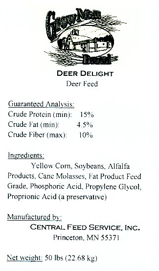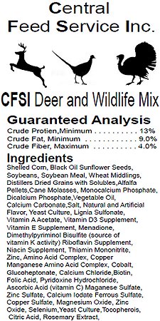 Deer & Wildlife Mix - this is the product of choice for deer, turkeys, pheasants, etc. It has it all - corn, soybeans, sunflowers, alfalfa, and much more including apple flavoring. There is not another wildlife mix out there that has as much to offer as this one ... don't forget your camera.